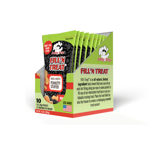 Fill'n Treat™ est une récompense savoureuse entièrement naturelle et limitée en ingrédients qui rendra votre chiot fou ! Insérez notre buse facile à distribuer dans l'un de nos jouets de friandises interactifs pour l'enrichissement ou l'entraînement. Placez le jouet rempli de friandises au congélateur pour créer une séance de friandises prolongée et stimulante !
