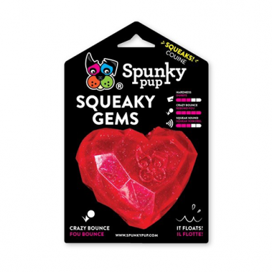 Les Squeaky Gems de Spunky Pup® sont des jouets couineurs amusants en forme de pierre précieuse taillée en brillant ! Forme à facettes pour un rebond fou que votre chien adorera ! Les Squeaky Gems flottent et passent au lave-vaisselle !